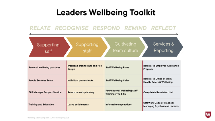 Western Sydney University, along with regulatory bodies, have a range of services and reporting mechanisms designed to support Leaders in managing people and workplace wellbeing. These services are free and intended to be engaged to work collaboratively with you.