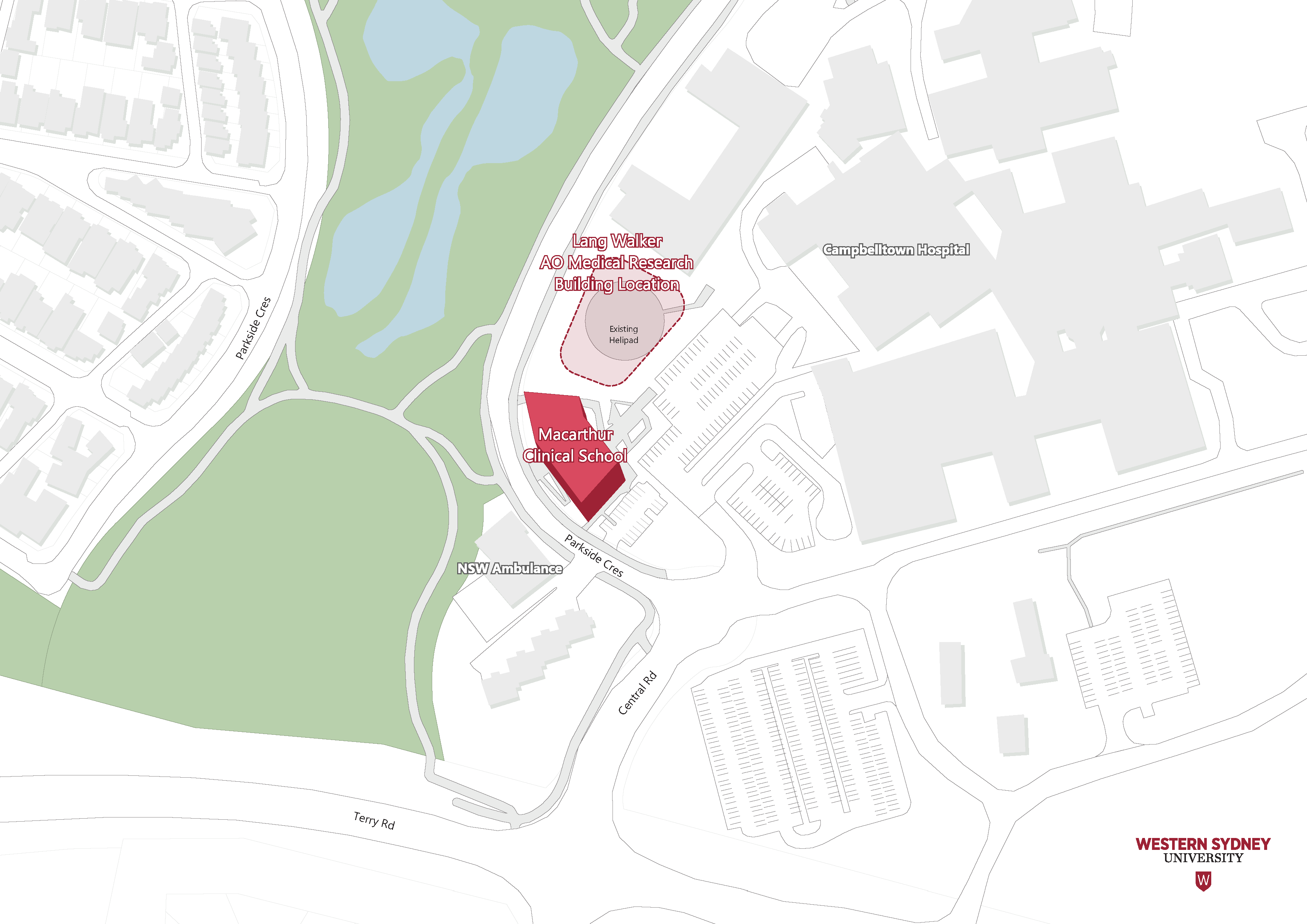 The Lang Walker AO Medical Research Building - Macarthur is the culmination of a productive decade-long research partnership between Western Sydney University, South Western Sydney Local Health District, the Ingham Institute for Applied Medical Research, and UNSW Sydney. Located within the Campbelltown Hospital Precinct, Ingham Institute - Macarthur will empower local clinicians and researchers to address the region’s unique health challenges and improve health outcomes for the people of South Western Sydney.