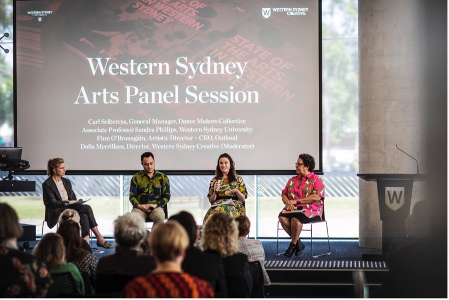 The keynote by Minister Burke was followed by a Q&A panel session with Carl Scibberas (Dance Makers Collective), Finn O'Branagáin (Outloud) and Associate Professor Sandra Phillips, moderated by Dolla Merrillees, Director, Western Sydney Creative[A1] . [A1]Include picture of Tony Burke