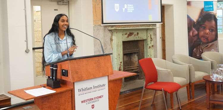 The event was MCed by 16-year-old Yehansa Dahanayake who is one of the report’s co-authors, as well as a co-researcher on the project and a participant in the Western Sydney workshops.