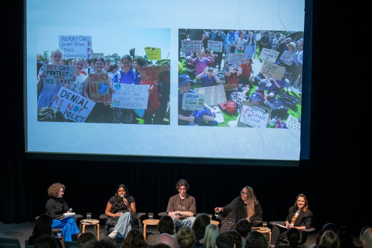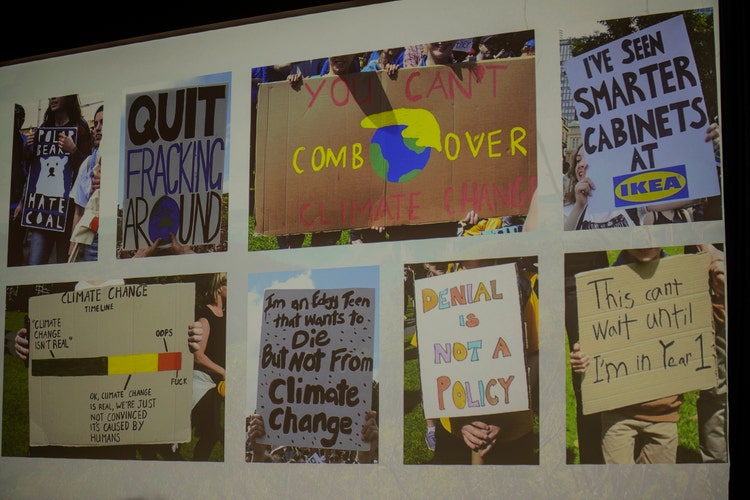 Inspired by 100 Climate Conversations, the evening featured an electrifying performance by Betty Grumble, visual signage across three universities, including our very own Western Sydney University, workshops allowing people to pen their feelings and frustrations on climate change and most notably, a panel discussion that considered how the power of young people's visual language on placards at strikes, can help bring about action for climate change.