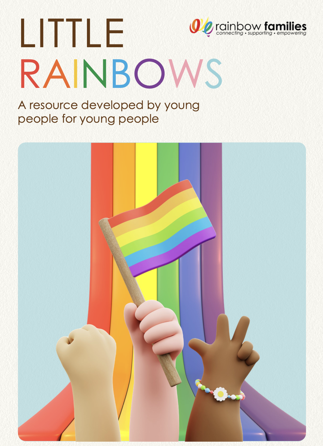 Young people living in families with LGBTQ+ parents and carers can often experience isolation from their peers and the public. This project aims to connect young people with other rainbow families, and to value and celebrate the diversity in these families. The Little Rainbows project stems from a need within the LGBTQ+ family community for a resource to support young people in these families to navigate and communicate their family dynamics to other families. The project is a collaboration between researchers, young people from rainbow families and LGBTQ+ advocates. The resource was developed for young people by young people with a lived experience of what it means to grow up in a rainbow family. The contributions of young people are essential to this project, as they share what they found challenging and what worked for them.